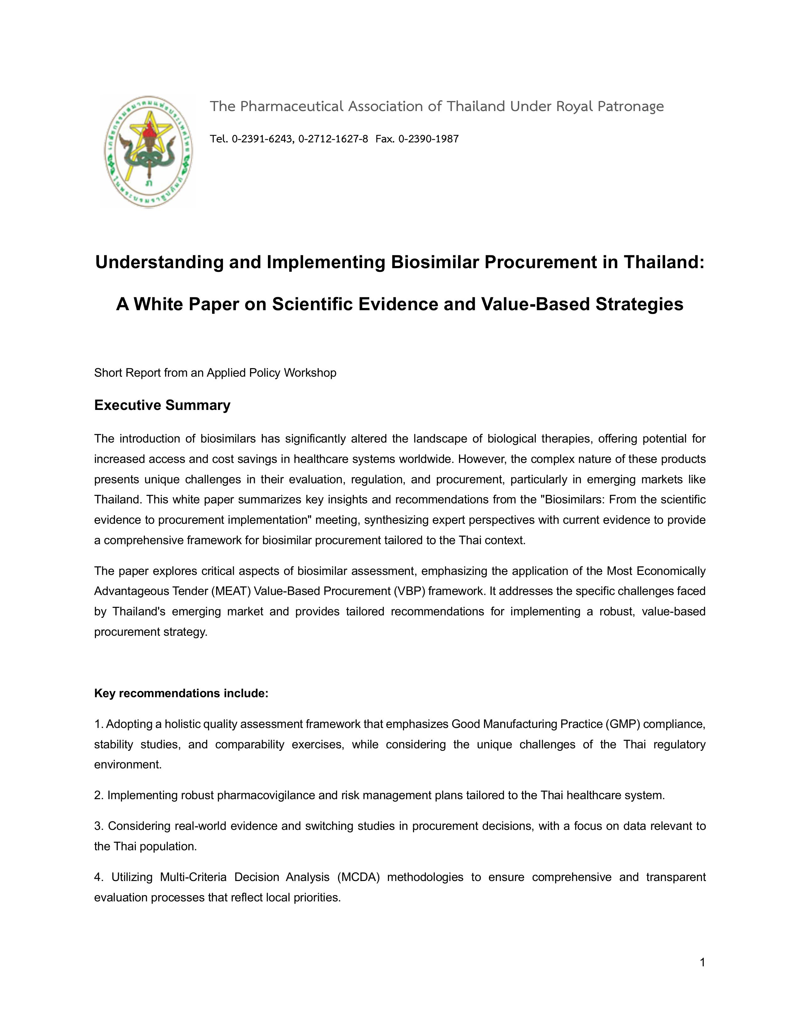 The Pharmaceutical Association of Thailand under Royal Patronage